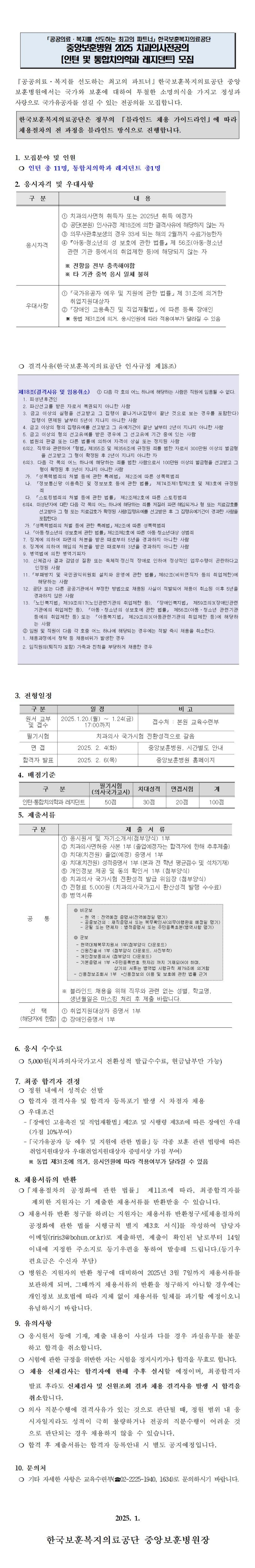 - 접수기간 : 2025.1.20.(월) ~ 2025.1.24.(금)
