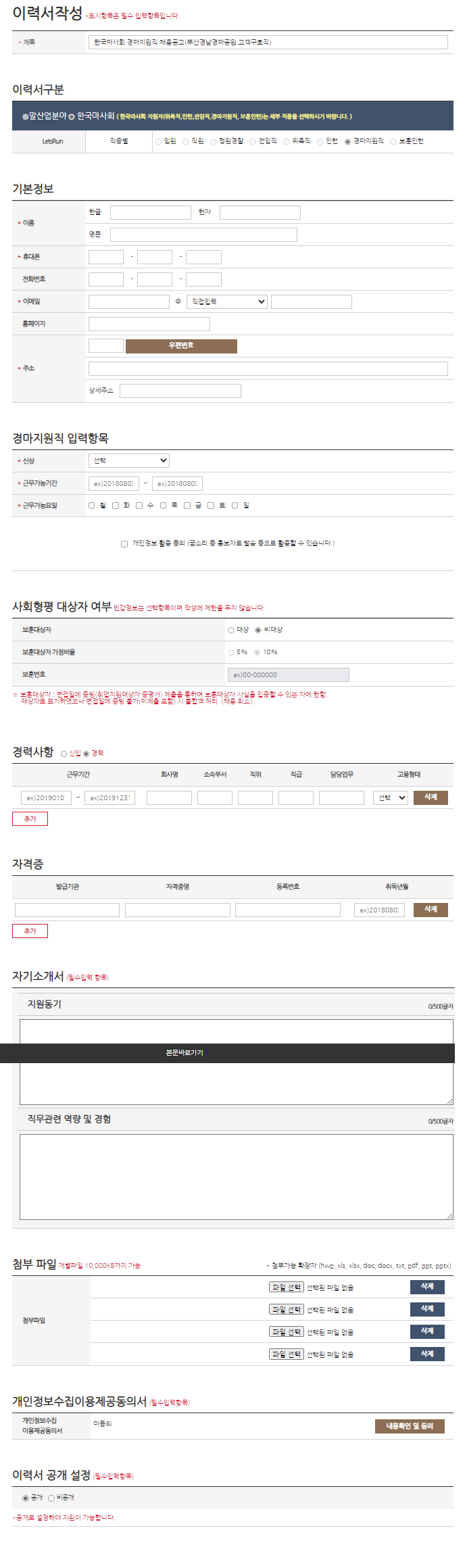 - 접수방법 : 한국마사회 채용정보 홈페이지를 통한 인터넷 접수(https://recruit.kra.co.kr/web/sfr003/sfr00302P010.do?menuId=M0012, 회원가입/로그인 필수)